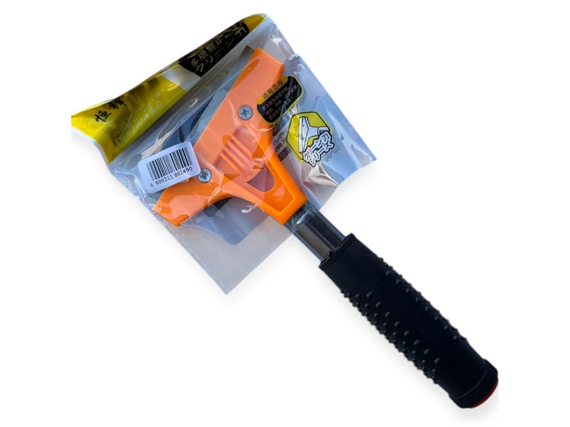 Очищення скла, плитки чи інших плоских поверхонь від забруднень, старих наклейок чи фарби. Помаранчевий пластиковий корпус із лезом та довга ручка із чорним текстурованим покриттям для зручного хвату.Розмір 21.5 см на 10.5 см