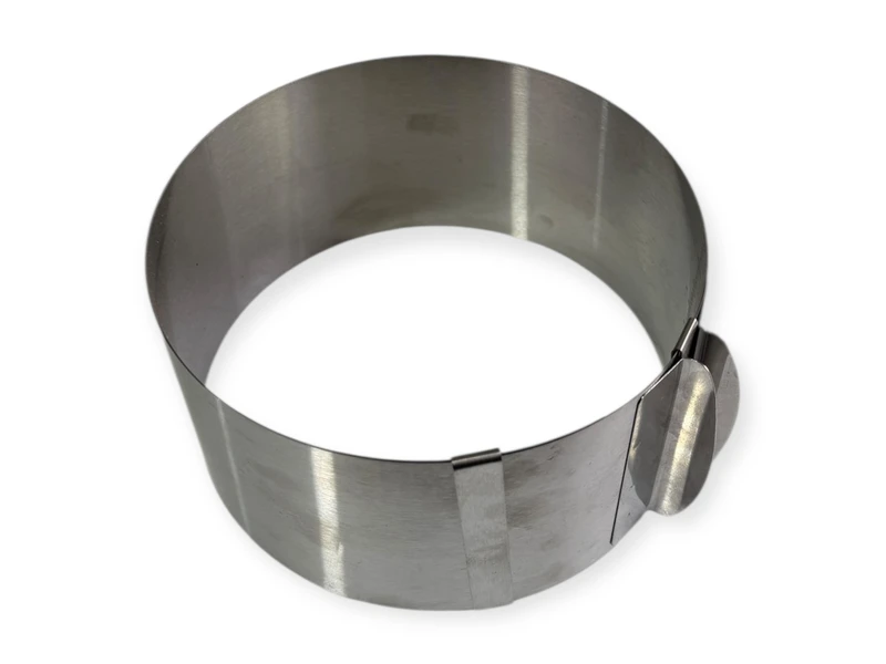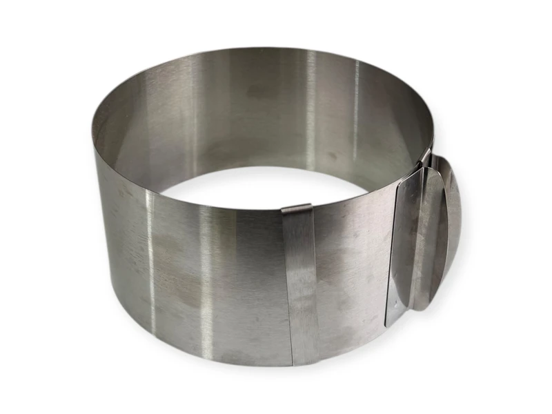 Розсувна форма для випічки без дна з регульованим діаметром для випічки кондитерських виробів різного діаметру. Можлива випічка коржів діаметром від 16 до 30 см. Форма виконана з високоякісної нержавіючої сталі, цей матеріал вважається одним із найбезпечніших для використання в кулінарії.
