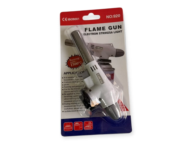 Flame Gun 920 - насадка на газовий балон. Звичайне застосування - в місцях, де витрата газу великий і звичайну пальник необхідно часто заправляти. Використовуючи насадку, немає необхідності взагалі заправляти пальник. Насадка багаторазова і просто переодягається з балона на балон.
