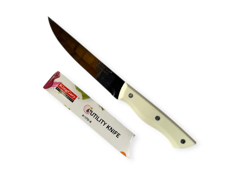 Кухонний ніж з бежевою пластиковою ручкою - це ідеальний інструмент для любителів готувати, який поєднує в собі елегантний дизайн та чудові функціональні характеристики. З його допомогою ви зможете легко та швидко справлятися з підготовкою інгредієнтів, що значно спростить процес приготування страв.