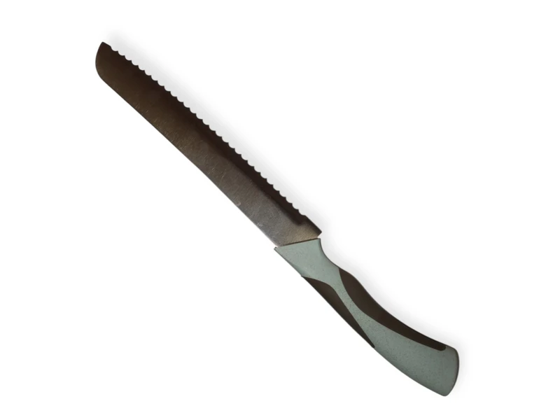 Кухонний ніж для хлібу з сіро-голубою пластиковою ручкою- це ідеальний інструмент для любителів готувати, який поєднує в собі елегантний дизайн та чудові функціональні характеристики. З його допомогою ви зможете легко та швидко справлятися з підготовкою інгредієнтів, що значно спростить процес приготування страв.