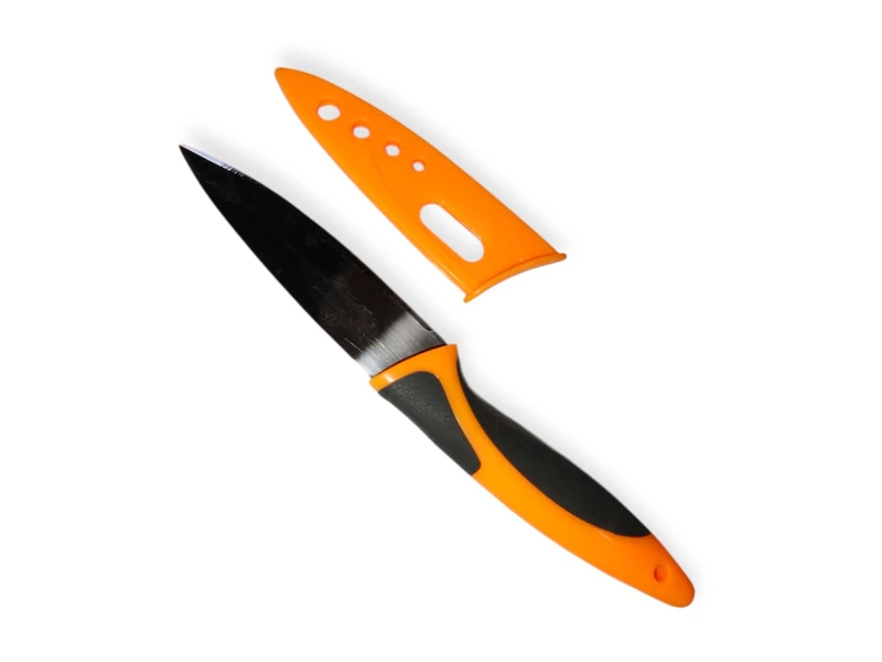 Кухонний ніж з чорно-оранжевою ручкою-це ідеальний інструмент для любителів готувати, який поєднує в собі елегантний дизайн та чудові функціональні характеристики. З його допомогою ви зможете легко та швидко справлятися з підготовкою інгредієнтів, що значно спростить процес приготування страв.Тип ножа: Кухонний.Загальна довжина: 21 см.Довжина клинка: 10,5 см