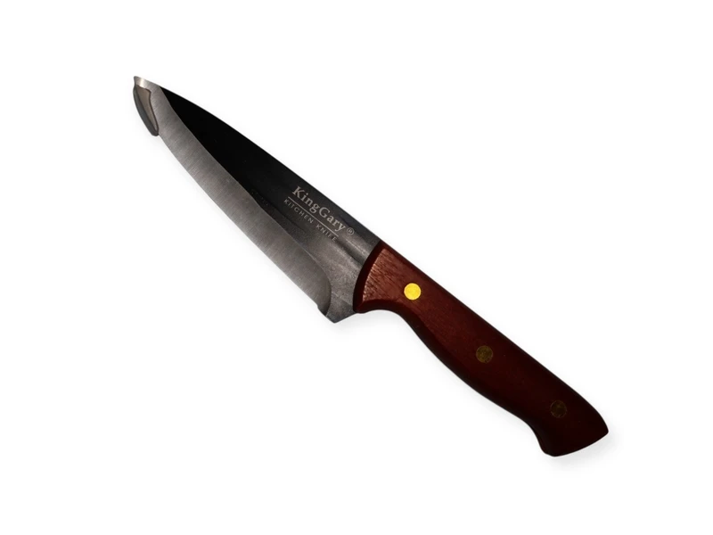 Кухонний ніж з нержавіючої сталі з ручкою із дерева -це ідеальний інструмент для любителів готувати, який поєднує в собі елегантний дизайн та чудові функціональні характеристики. З його допомогою ви зможете легко та швидко справлятися з підготовкою інгредієнтів, що значно спростить процес приготування страв.