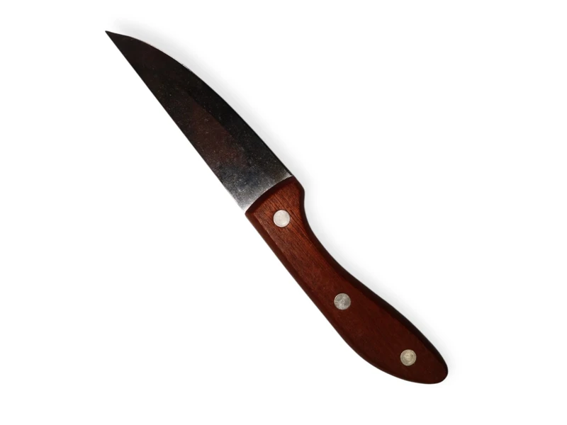 Кухонний ніж з ручкою із темного дерева-це ідеальний інструмент для любителів готувати, який поєднує в собі елегантний дизайн та чудові функціональні характеристики. З його допомогою ви зможете легко та швидко справлятися з підготовкою інгредієнтів, що значно спростить процес приготування страв.