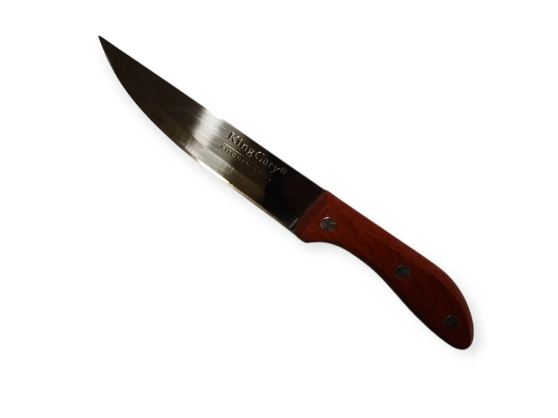 Кухонний ніж з ручкою із темного дерева-це ідеальний інструмент для любителів готувати, який поєднує в собі елегантний дизайн та чудові функціональні характеристики. З його допомогою ви зможете легко та швидко справлятися з підготовкою інгредієнтів, що значно спростить процес приготування страв.