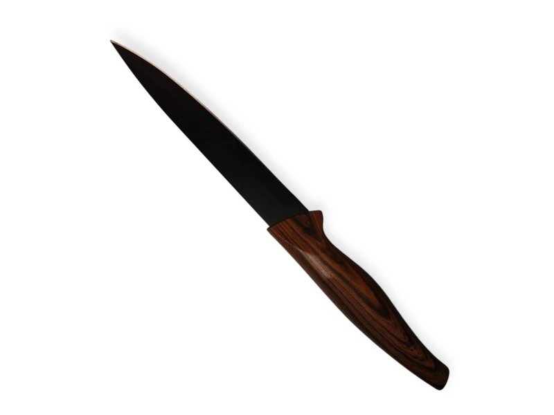 Кухонний ніж з ручкою під дерево- це ідеальний інструмент для любителів готувати, який поєднує в собі елегантний дизайн та чудові функціональні характеристики. З його допомогою ви зможете легко та швидко справлятися з підготовкою інгредієнтів, що значно спростить процес приготування страв.