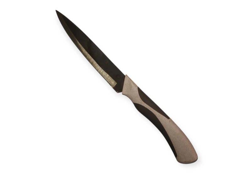 Кухонний ніж з сірою пластиковою ручкою - це ідеальний інструмент для любителів готувати, який поєднує в собі елегантний дизайн та чудові функціональні характеристики. З його допомогою ви зможете легко та швидко справлятися з підготовкою інгредієнтів, що значно спростить процес приготування страв.