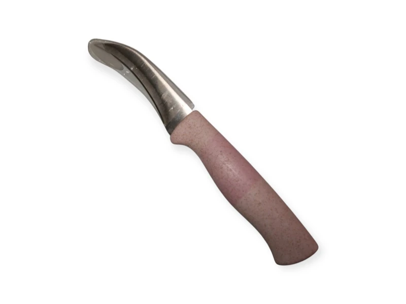 Кухонний ніж з вигнутим лезом та розовою ручкою-це ідеальний інструмент для любителів готувати, який поєднує в собі елегантний дизайн та чудові функціональні характеристики. З його допомогою ви зможете легко та швидко справлятися з підготовкою інгредієнтів, що значно спростить процес приготування страв.