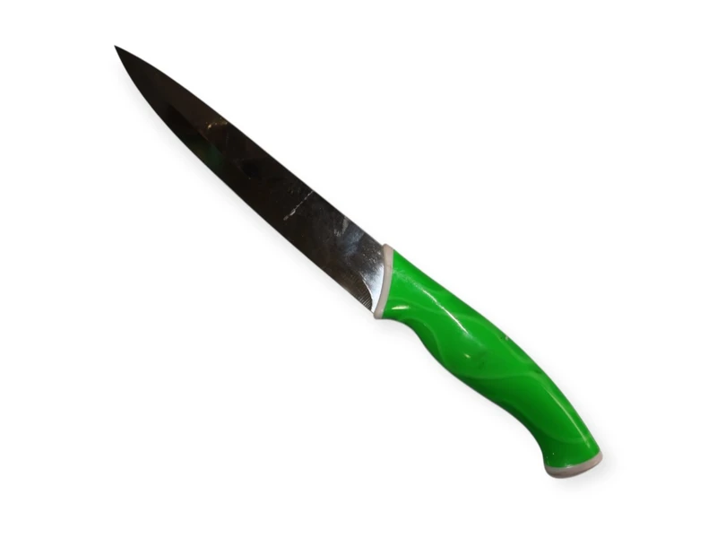 Кухонний ніж з зеленою пластиковою ручкою - це ідеальний інструмент для любителів готувати, який поєднує в собі елегантний дизайн та чудові функціональні характеристики. З його допомогою ви зможете легко та швидко справлятися з підготовкою інгредієнтів, що значно спростить процес приготування страв.