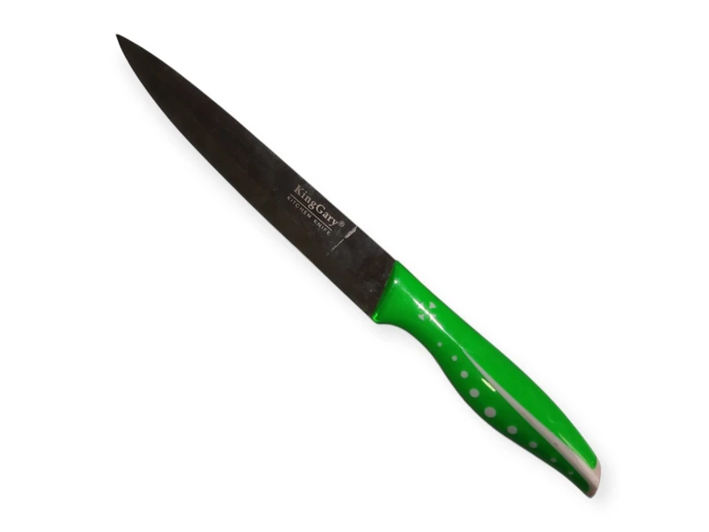 Кухонний ніж з зеленою пластиковою ручкою - це ідеальний інструмент для любителів готувати, який поєднує в собі елегантний дизайн та чудові функціональні характеристики. З його допомогою ви зможете легко та швидко справлятися з підготовкою інгредієнтів, що значно спростить процес приготування страв.
