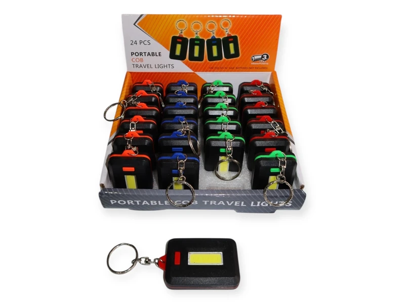 Цей брелок-ліхтарик виготовлений із пластику та оснащений вісьмома LED світлодіодами. Для роботи потрібні три батареї типу ААА, які не включені в комплект.