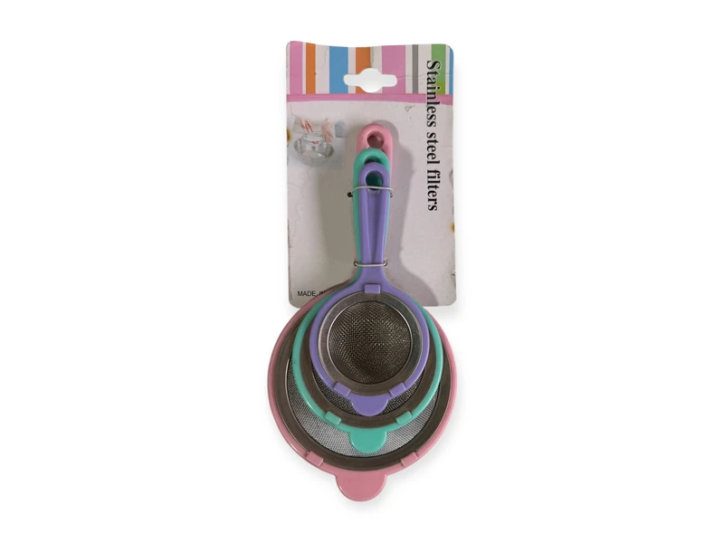 Набір із трьох кольорових сит.Три розміри : 10 см ; 7,5 см ; 6 см.