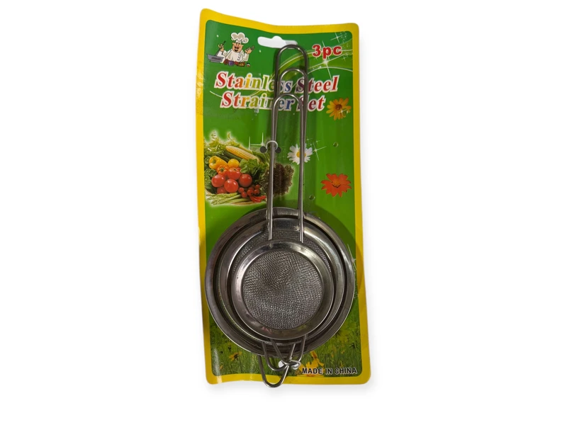 Набір із трьох металевих сит.Три розміри: 10 см; 8,5 см ; 7 см.