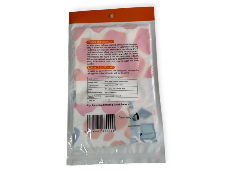 Тряпка выполнена из искусственной замши размером 36 на 36 см. Подходит для любых поверхностей.