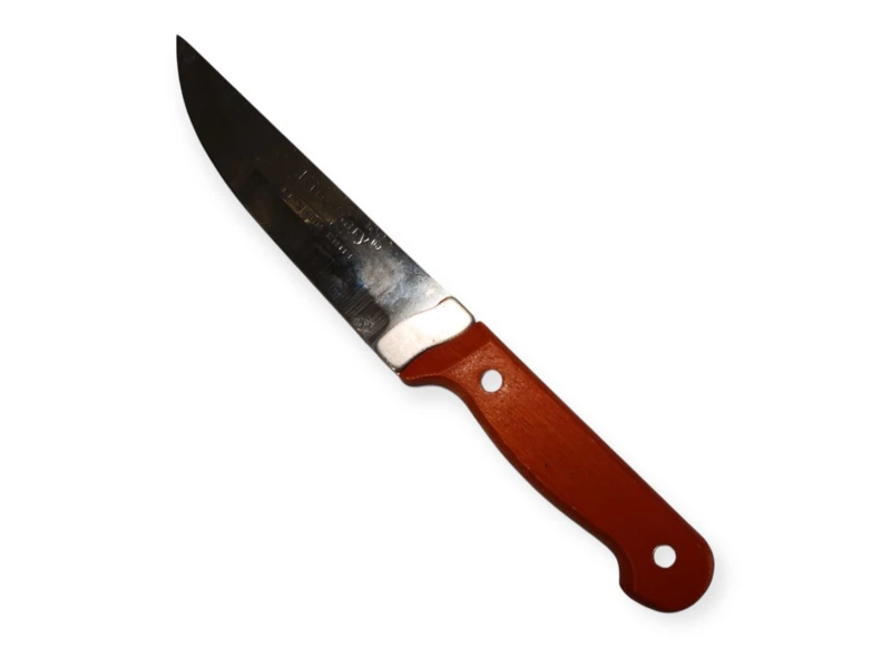 Кухонный нож с рукояткой из тёмно-оранжевого дерева — это идеальный инструмент для любителей готовить, который сочетает в себе элегантный дизайн и отличные функциональные характеристики. С его помощью вы сможете легко и быстро справляться с подготовкой ингредиентов, что значительно упростит процесс приготовления блюд.