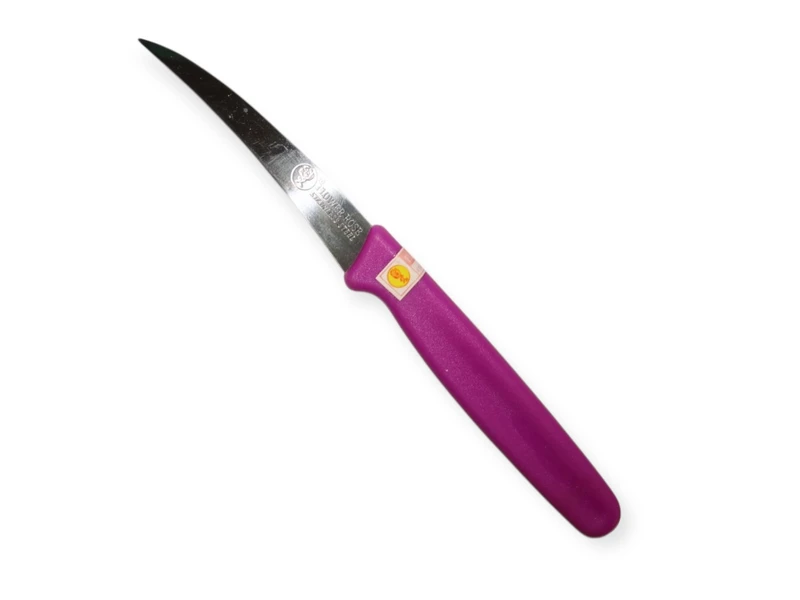 Кухонный нож с изогнутым лезвием и тонкой ручкой — это идеальный инструмент для любителей готовить, который сочетает в себе элегантный дизайн и отличные функциональные характеристики. С его помощью вы сможете легко и быстро справляться с подготовкой ингредиентов, что значительно упростит процесс приготовления блюд.Тип ножа: Кухонный.Общая длина: 16,5 см.Длина клинка: 7 см