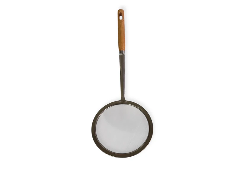 Шумовка-половник з металуАртикул: MT-652В наявностіШумовка-половник з металу та деревʼяною ручкою.Розмір : 35 см x 14 см