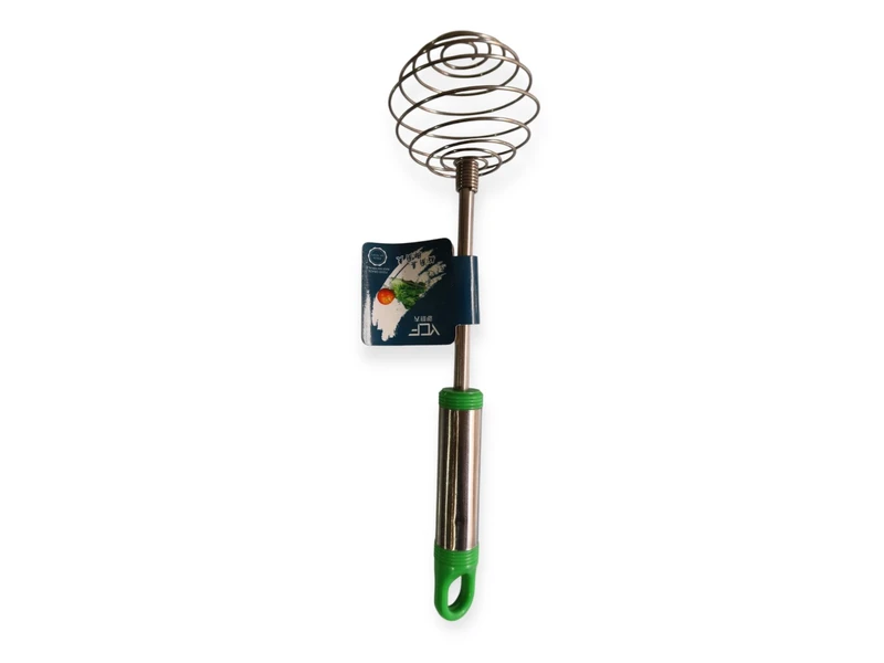 Ручний вінчик призначений для збивання яєць, вершків, соусів, тіста та інших інгредієнтів. Пружинна насадка забезпечує рівномірне змішування без зусиль. Виготовлений із якісної нержавіючої сталі, що гарантує довговічність і стійкість до корозії. Ергономічна ручка з пластику з отвором для підвішування додає комфорту у використанні.