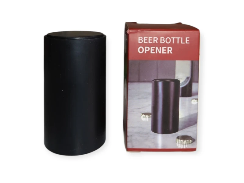 Вбудований магніт, який прикріплює кришку до відкривачки, забезпечує легке видалення її після відкриття. Цей відкривач підходить для використання з пивними пляшками або безалкогольними, газованими напоями.