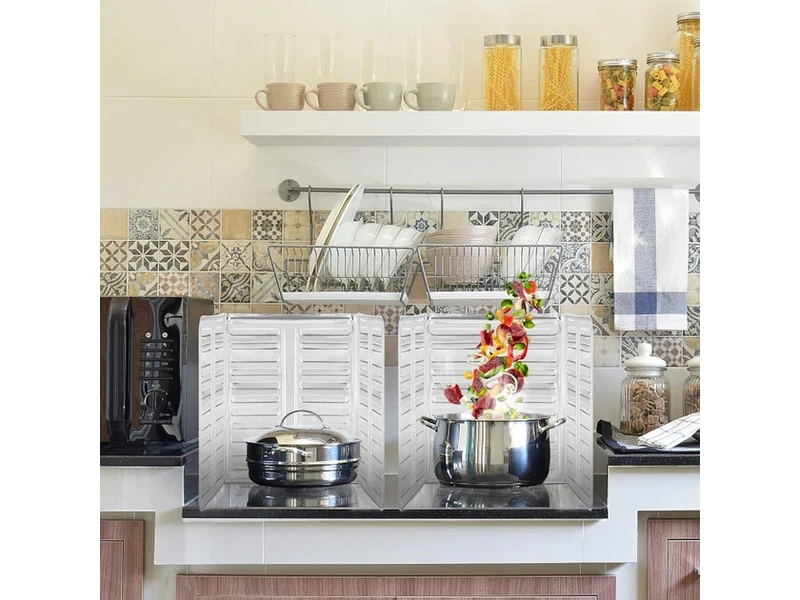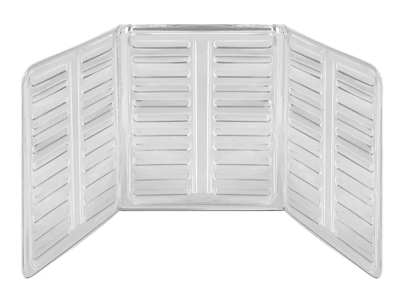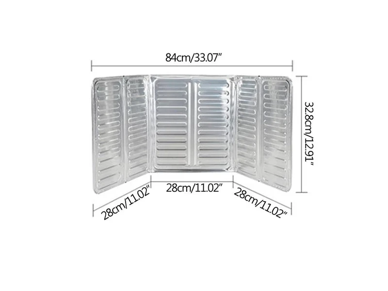 Розміри екрана становлять 32.5 см заввишки й 84 см завдовжки, що забезпечує достатню площу, щоб повністю покрити зону приготування на плиті. Завдяки своїй легкій конструкції екран важить усього 73 грами, що робить його зручним для перенесення та використання навіть у похідних умовах. Складаний алюмінієвий екран для газової плити є незамінним помічником для будь-якого кухаря, який хоче уникнути бризок і бризок олії під час готування. Він гарантує безпеку та чистоту в процесі приготування їжі, а також спрощує догляд і очищення плити після приготування.